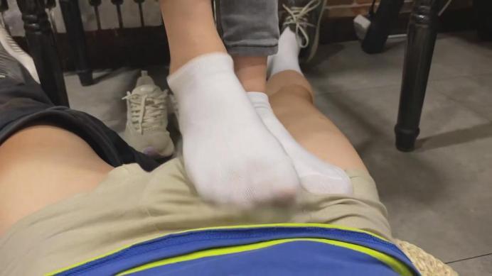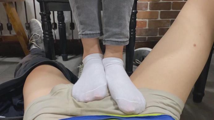 午后有点无聊,那就来玩一个我的日常休闲游戏吧,那必然是我最喜欢玩的蹂躏男生下面的游戏,正好白袜穿了两天有点脏,我命令他把裤子脱下躺好,双腿分开,便开始了我的日常发泄,我用脚趾碾压他的DD,还不停地搓弄他的...,我的双脚越来越用力,不停地持续蹂躏他的...他想要反抗可是已经没力气了,只能痛苦的忍耐,最喜欢看他痛苦的样子了,嘻嘻~突然他身体抖了一下,向我求饶不要在弄了,我才发现原来他的...已经被我的脚蹂躏tunai了,哈哈哈哈,那我更要使劲继续弄他,更加猛烈的蹂躏,看着他越难受,我就越兴奋~